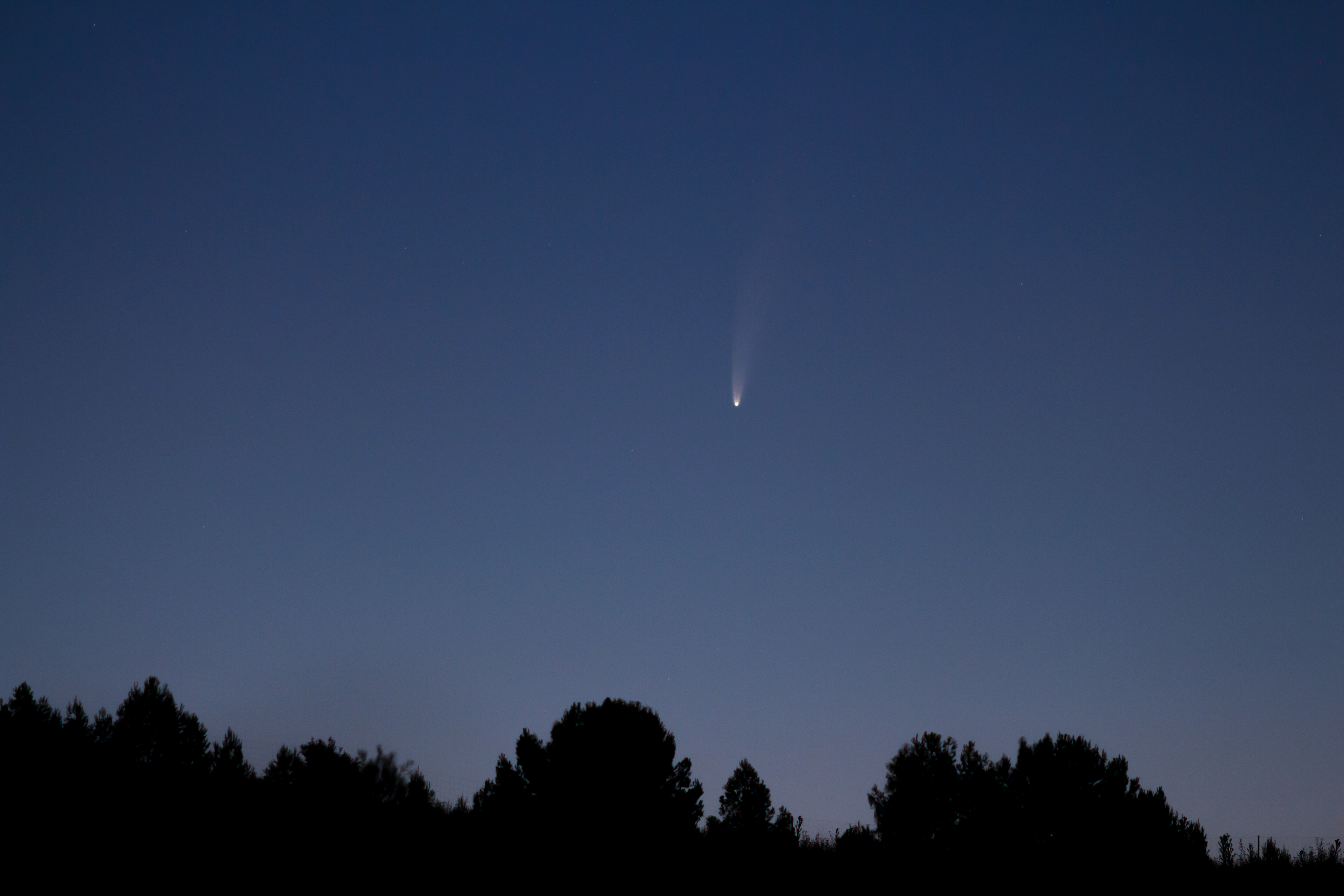 Canon 650D - Objetivo Canon 200 mm a f/2..8 ISO 800. Apilado de imágenes de 15 segundos de exposición. El cometa era visible al anochecer en la constelación de la Osa Mayor con una magnitud visual de +3.5